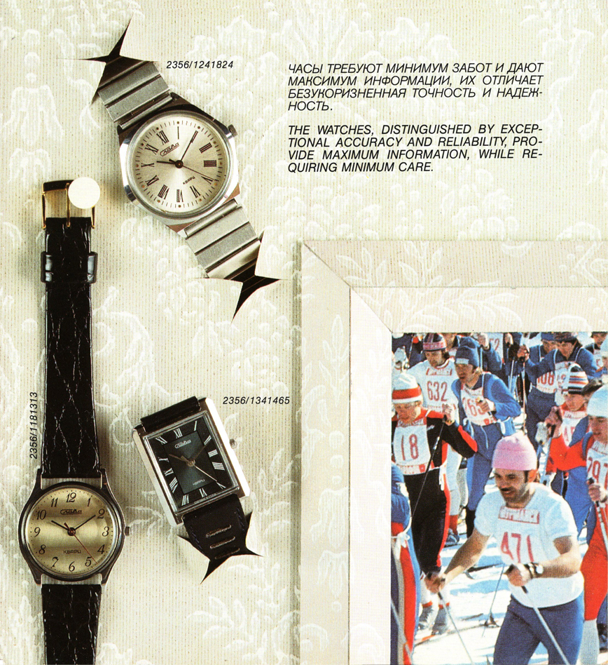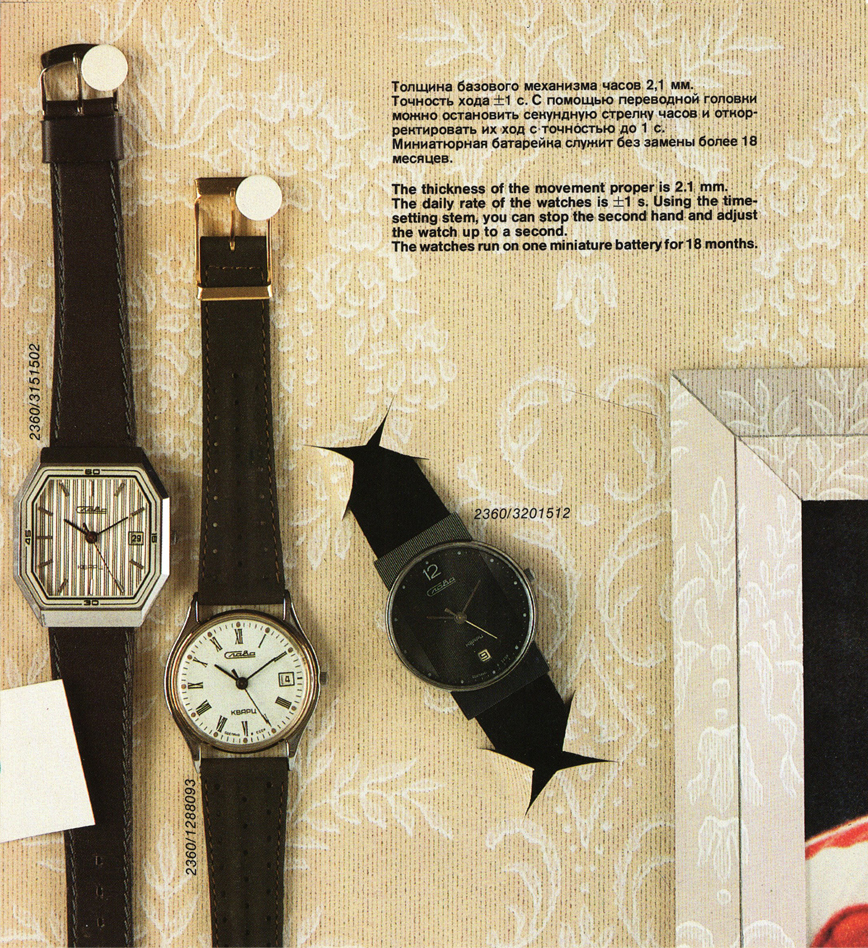 Часы модели 2360 снабжены одинарным, а 2350 двойным календарем. Толщина базового механизма часов 2.1 мм. Точность хода +-1с. С помощью переводной головки можно остановить секундную стрелку часов и откорректировать их ход с точностью до 1 секунды. Миниатюрная батарейка служит без замены более 18 месяцев.