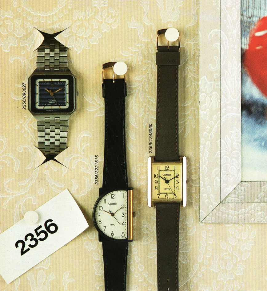 Легкие плоские корпуса часов выпускаются в хромированных, позолоченных и пластмассовых вариантах.